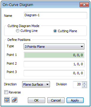 The diagram direction can be selected in the [Plane Surface] or [Plane Normal] direction, and the [Reverse] option can be checked to draw the diagram in the opposite direction.