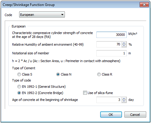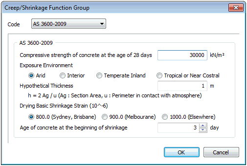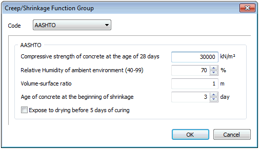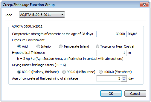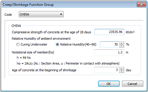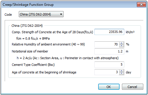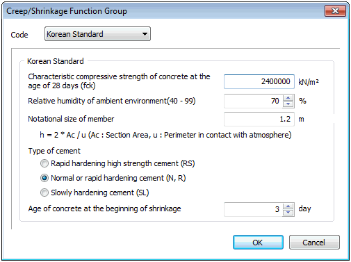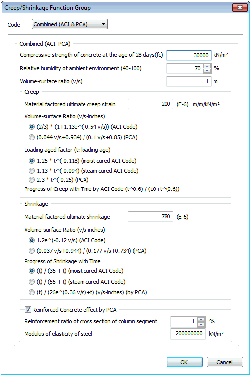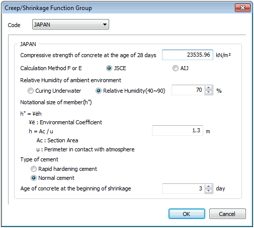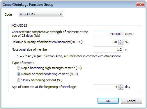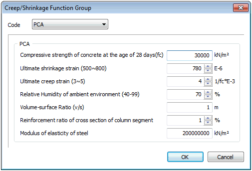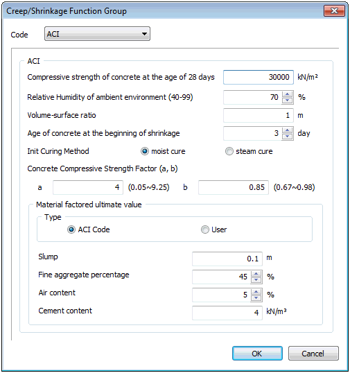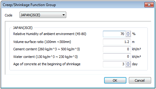 - Required to input each content per unit volume to generate Creep/Shrinkage Function automatically