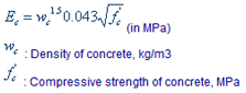 Modulus of elasticity, which will be reflected in the analysis, is calculated using the compressive strength of concrete and weight density