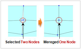 Merge 2 nodes by selecting the moving node and maintained node. If a Free Edge is created on a small area, the Merge 2-Nodes function can be used to edit easily.