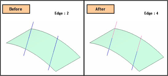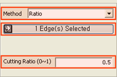 <Instruction> 1. Define Method as Ratio. 2. Select Edge. 3. Input 0.5 at Cutting Ratio(0~1). 4. Break Edge by clicking [OK]. |