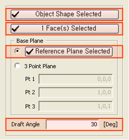 sub-faces to be drafted (rotated) from the selected object. Reference Plane Select a Reference Face, which will become the basis for
