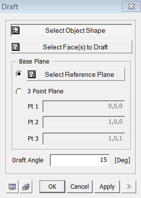 of the 3 points may be specified using Snap. Draft Angle Specify a Draft (rotational) Angle. |