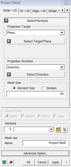 Select Node(s) Select the nodes (Mesh, Node) that will be projected.