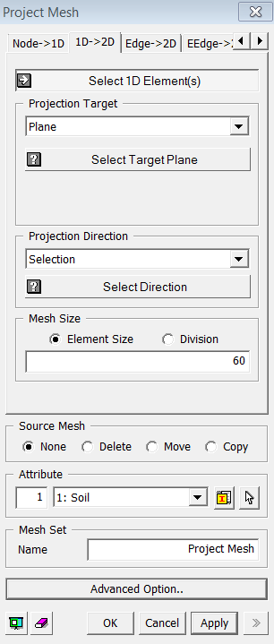 Select 1D-Element(s) Select the 1D elements (Mesh, Element) that will be projected. |