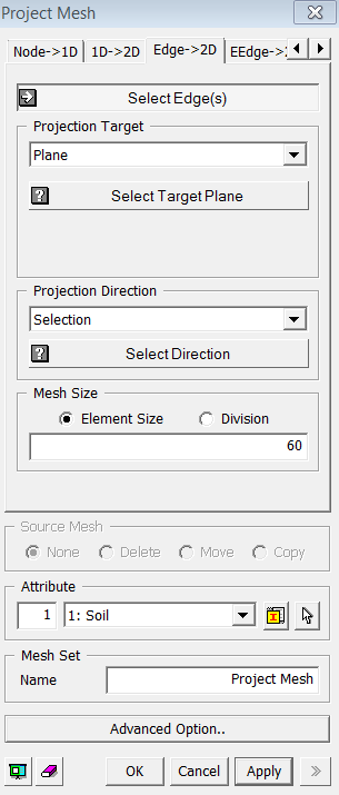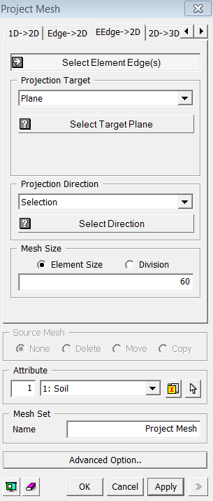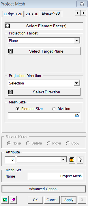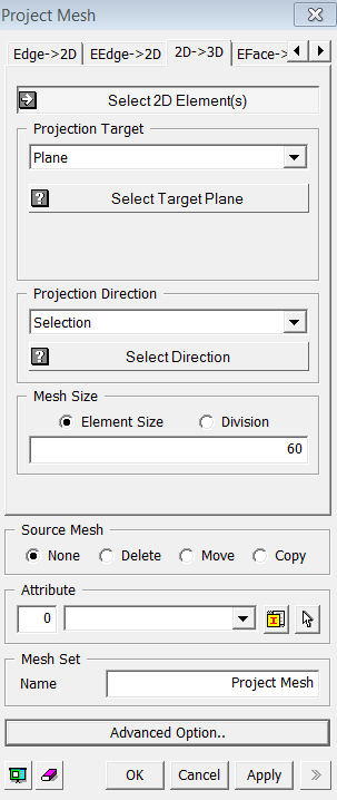 Select 2D-Element(s) Select the 2D elements (Mesh, Element) that will be projected. |