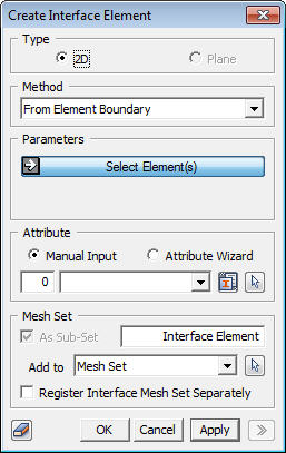 Select Elements(s) In the case of 3D, Select Plate element (2D Element) to create interface elements on both sides. In the case of 2D, Select Truss/Beam element (1D Element) to create interface elements on both sides.
