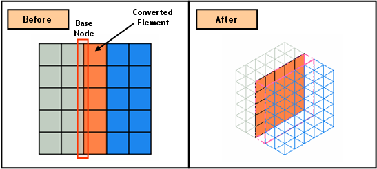 Convert 1D, 2D, 3D elements to interface element of relevant type. By selecting just elements, it would not provide enough information to define the orientation of interface elements. Therefore, it is required to specify Base Nodes.