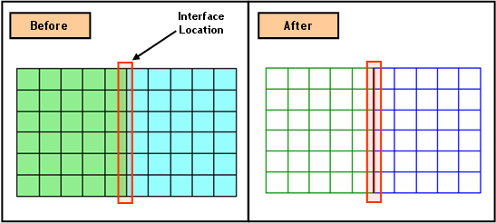 Note 1. If the user selects elements and there are neighboring deselected elements, midas GTS generates an Interface Element between the two groups of elements. 2. If the user selects different groups of elements, midas GTS prompts users whether to generate an Interface Element at the outline of the boundary or not. .