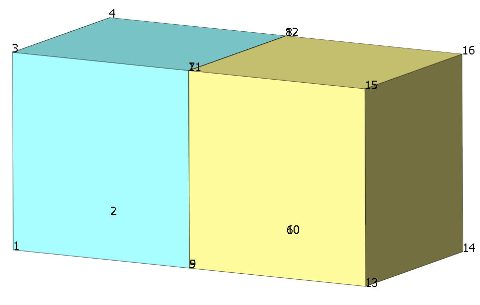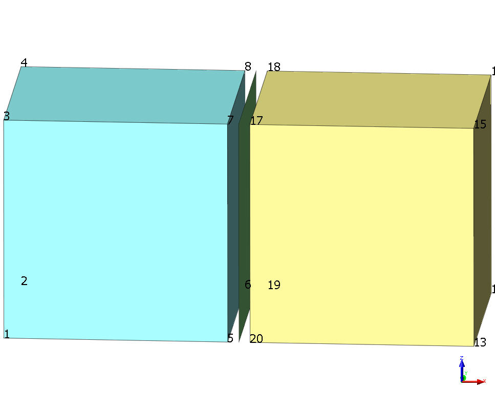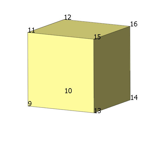 Solid 1 node arrangement where interface element will be made: 5 6 8 7 Solid 2 node arrangement where interface element will be made: 9 10 12 11