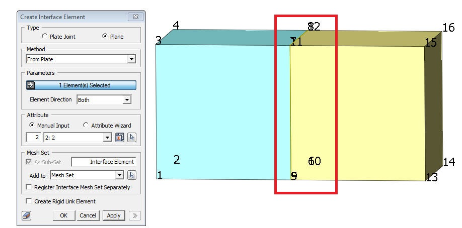 Note: Register Interface Mesh Set Separately will create two new mesh sets corresponding to the left and right side of the plate element. |