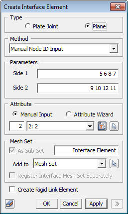 elements or mesh sets for creating interface elements. <Manual Node ID Input> ----------> Goto Example ------------------------------------------------------------------------------------------------------------------------------------------- (Example)