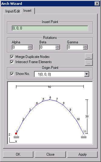 Show No.: Display the node numbers making up the created arch.