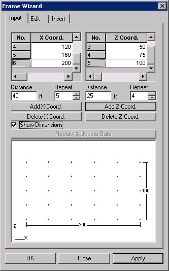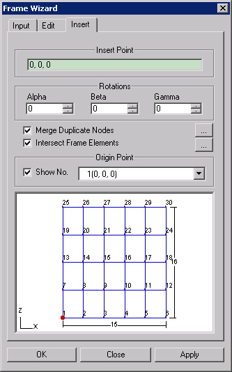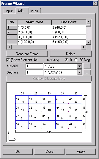 Use Frame Wizard to auto-generate a 2-D plane grid frame composed of Beam Elements in 3-D.