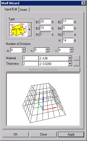Use Shell Wizard to auto-generate a rectangular box, cylindrical, spherical or semi-spherical shell structure composed of Plate Elements.