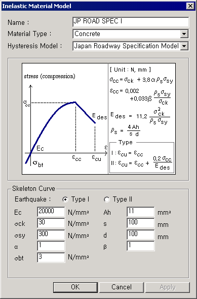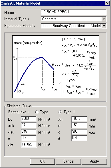 Earthquake Type II: Ultimate strain is calculated by the Specification, and the zone of descending slope (Edes) is retained.