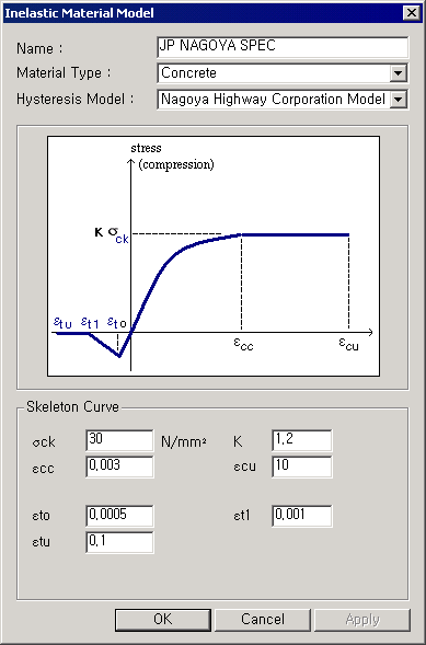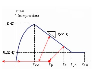 This model is presented in Seismic Performance Comparison Investigation, P23 of Japanese Concrete Standard Specification. Softening zone after the maximum stress, residual plastic deformation and stiffness reduction effect under the condition of reloading after unloading are reflected.
