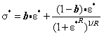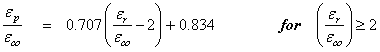 The above formula represents a curved transition from the elastic range to the yielding range.