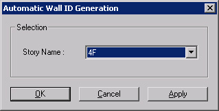 The wall combination numbers (Wall IDs) of wall elements input on a story are automatically reassigned. When line elements are expanded and converted into wall elements by the Extrude Elements function, the identically assigned wall IDs can be automatically modified.