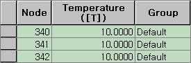 Enter or modify nodal temperatures at specific nodes in a spreadsheet format table.