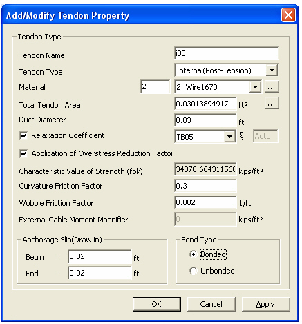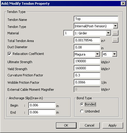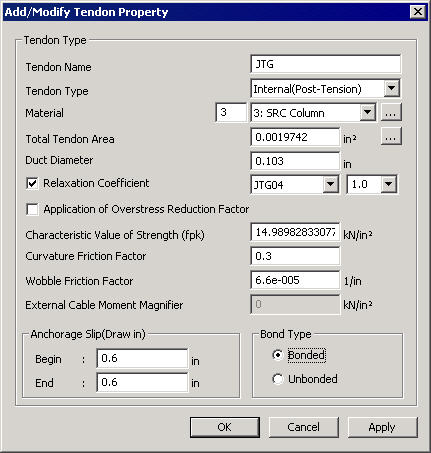 Add/Modify Tendon Property dialog box