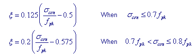 Select 10 or 45 for Relaxation Coefficient (C), which relates to the product. Relaxation coefficients of 10 and 45 may be used for general steel and low-relaxation steel respectively. Losses due to steel relaxation are determined from the following equation: