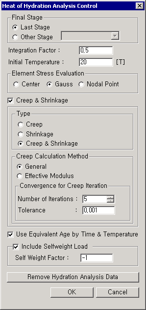 Heat of Hydration Analysis Control dialog box