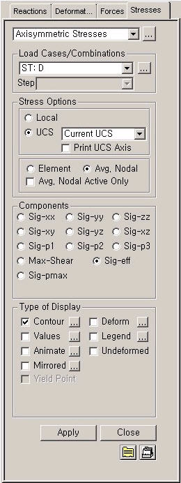 Display the stresses of axisymmetric elements in contour.