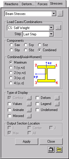 Center: Display the stress at the center of a beam element.