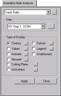 IsoSurface searches and displays the planes of equal crack ratios button resulting from Heat of Hydration analysis within the solid elements.