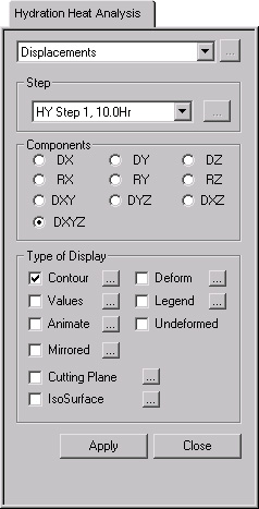 Display the displacements of solid elements resulting from Heat of Hydration analysis in contour.