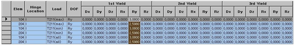 Times at which yielding takes place in the members defined with inelastic hinges are produced in a table.