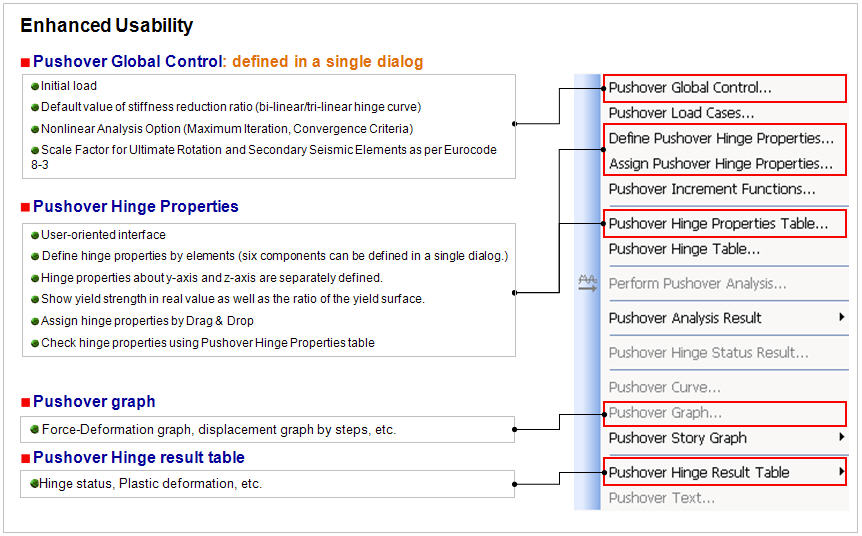 In midas Gen Ver.7.4.1, usability, analysis speed and convergence in pushover analysis are significantly improved.