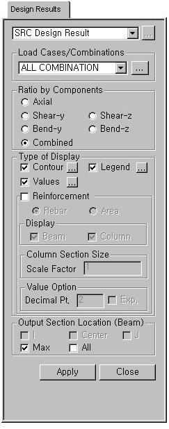 I, Center, J: Represent the RC beam member's sectional locations. The user can not select the locations. It is automatically selected following the selection of "Max" or "All".