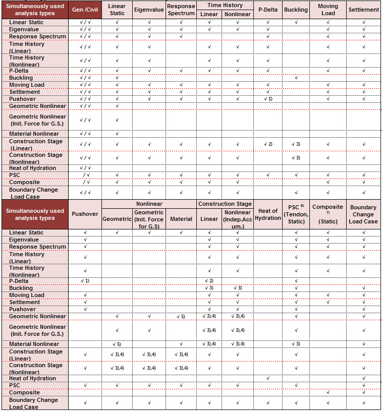 4) Nonlinear analysis defined in the 'Construction Stage Analysis Control' dialog is reflected in the construction stages only. Nonlinear analysis defined in the 'Nonlinear Analysis Control' dialog is reflected in the postCS only.
