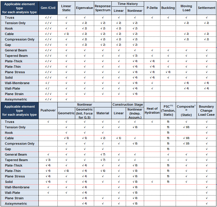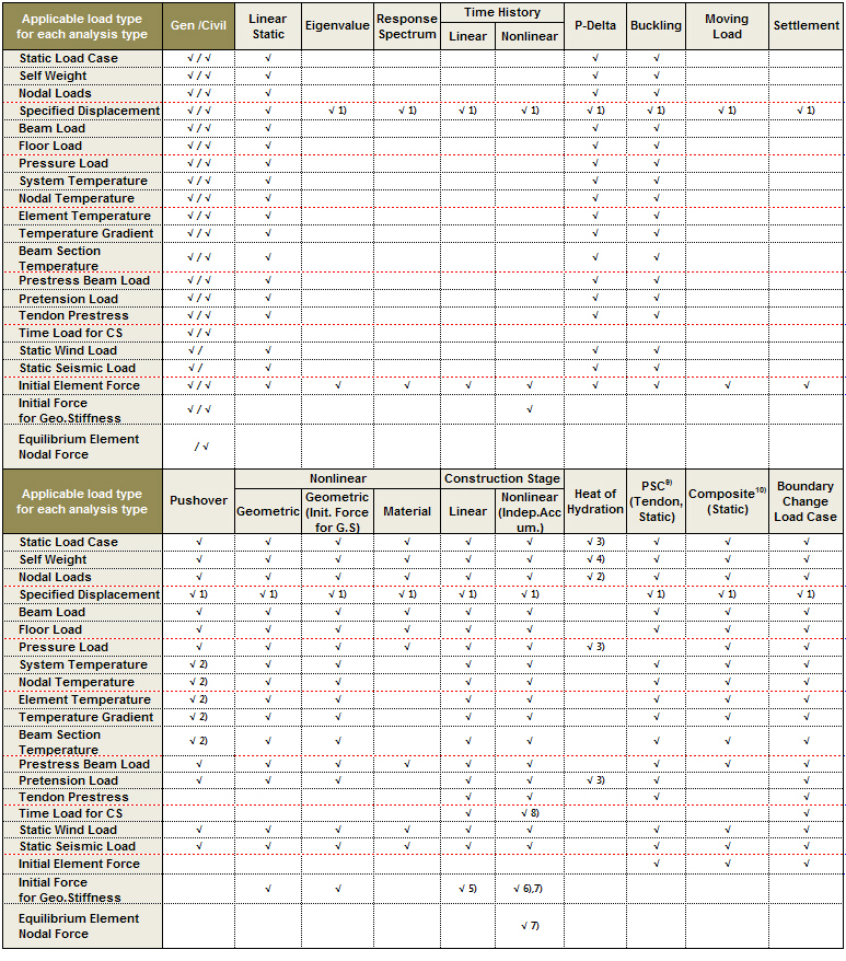 New for Ver.7.4.1midas Gen and Civil are general purpose finite element analysis software. The significant modeling features based on the various element types, material/section DBs, boundary conditions and load types enable the practicing engineers to undertake virtually all types of structural analyses. However, some restrictions apply to the features in that some of the features cannot be used simultaneously. For example, Support Settlement Analysis and Heat of Hydration Analysis cannot be performed simultaneously. Also Plane Strain element cannot be applied to Bucking Analysis.