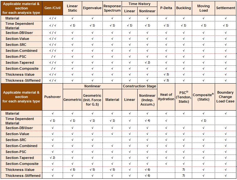 7) General Beam/Tapered Beam elements cannot be used for material nonlinearity.