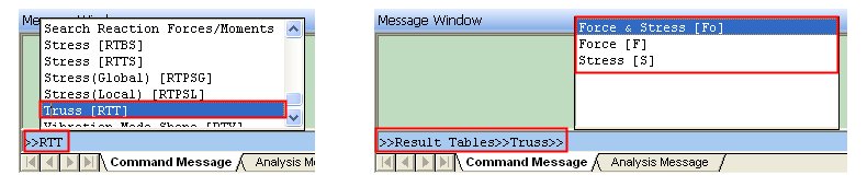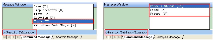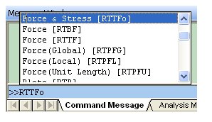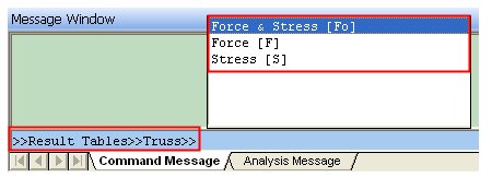 5. This defines a Command Key RTTFo, which performs the path Results > Result Tables > Truss > Force & Stress. Since this Command Key is not included in any Group, it can be typed in the default Command Line.