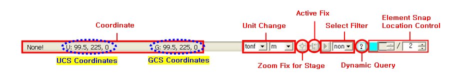 In the Status Bar, check the coordinates as per each coordinate system, unit system, select filtering option, element snap location control, etc., which will increase the work efficiency.