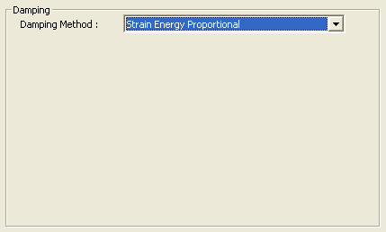 Strain Energy Proportional Damping ratios for each mode are automatically calculated using the damping ratios specified for element groups and boundary groups in Group Damping, which are used to formulate the damping matrix. Therefore, in the case of Strain Energy Proportional, it is necessary to directly input damping ratios by element groups and boundary groups in Group Damping. Strain Energy Proportional can be used in Modal Analysis Method and Direct Integration Method.