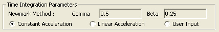 Newmark Method: Newmark Method is used to nuemerically integrate kinetic equations in direct integration. The related parameters, Gamma and Beta are entered. Three methods exist for input. Among them, Constant Acceleration is recommended, which always results in stable analysis.