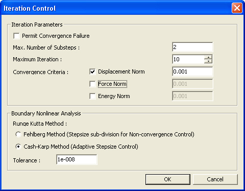 Iteration Controls: Specify an Iteration Control method that determines the accuracy and convergence of a solution for nonlinear analysis.