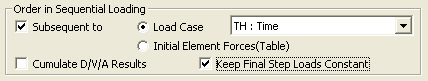 Keep Final Step Loads Constant: The final step loads of the preceding load case are maintained. It is only applicable for a time history analysis load (TH).