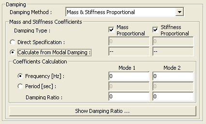 Calculate from Modal Damping: The proportional coefficients are calculated from the user defined modal damping ratios and automatically entered.