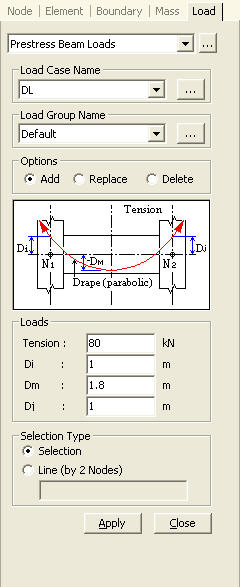 The concept of defining the pre-stress loads in beams is illustrated below.