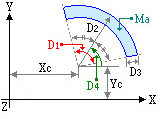 Xc, Yc : GCS coordinates of the center of the circular arc volume