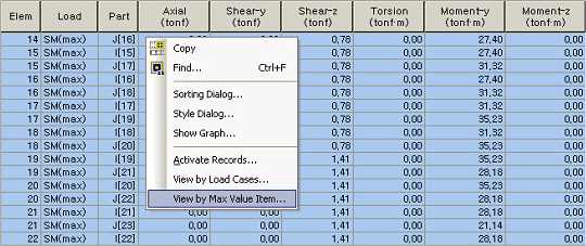 In order to design members, concurrent forces are required. The View by Max Value Item (invoked upon right-clicking on the table) provides