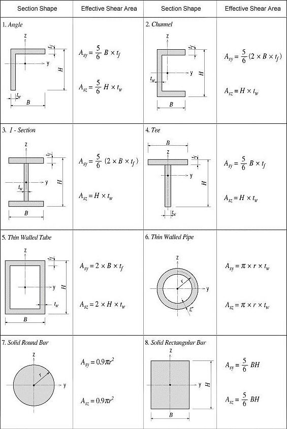 The shear deformations are neglected if the effective shear areas are not specified. Cyp, Cym, Czp and Czm are used to calculate the bending stresses. Qyb and Qzb are used to calculate the shear stresses. Peri is used to calculate the Painting Area.