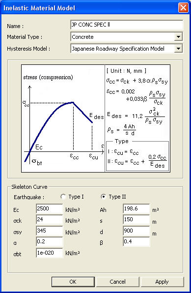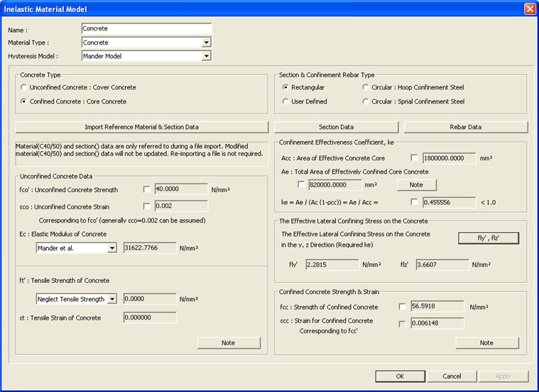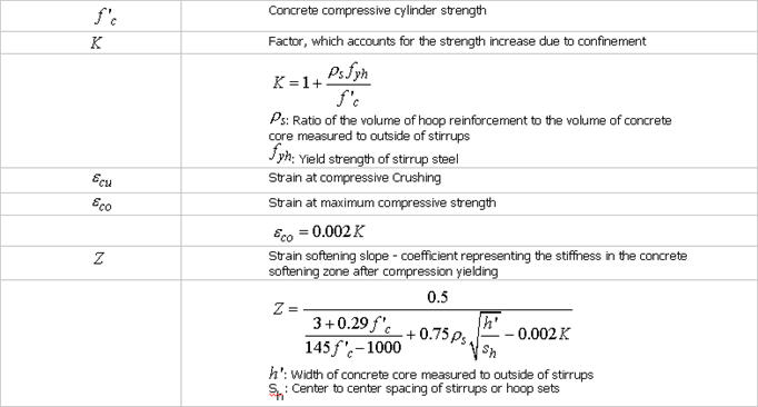 Stress-strain relationships between reinforcing steel and concrete are defined to carry out pushover analysis using Fiber Elements. Each model is unique based on the proponents and specifications. |