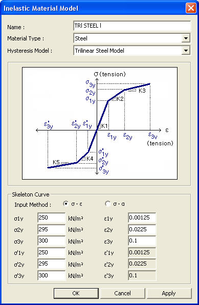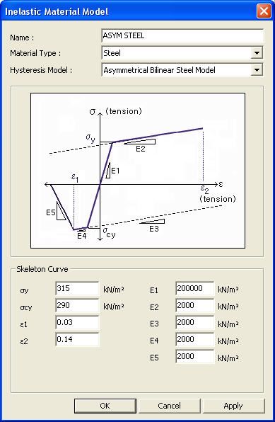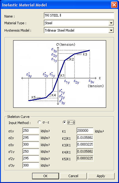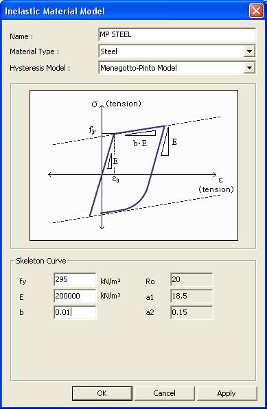 Material Type: Steel or concrete for which a hysteresis model will be defined